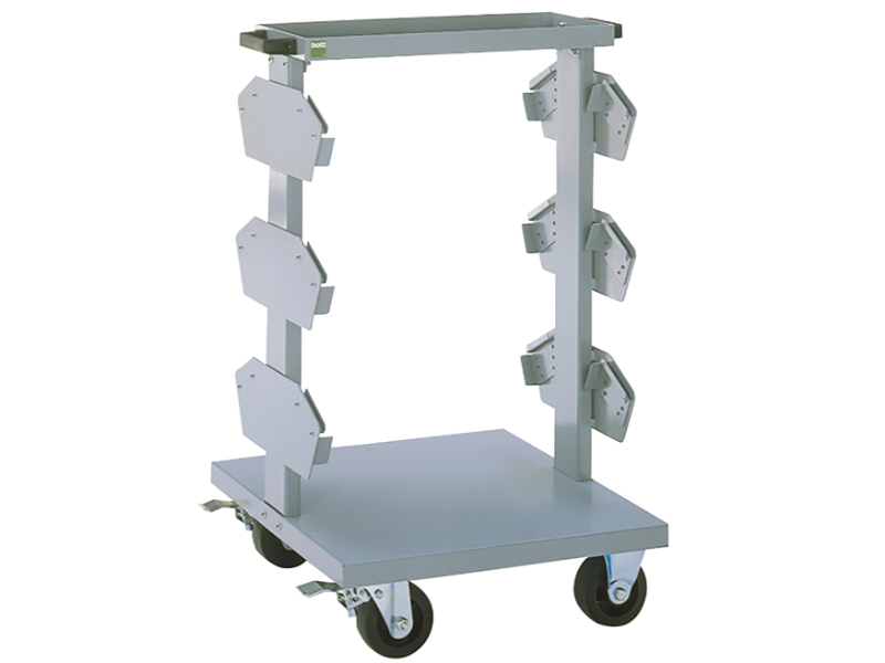 CNC compact trolley. Heavy duty, fixed position, for up to 6 tool carriers, 300kg U. D. L. total capacity. Finished in durable powder coat paint in RAL 7035 light grey. WxDxH: 650x710x1020mm.