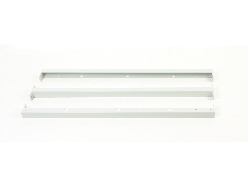 Cubio bench stringer set for 1. 5M framework bench. Heavy duty, steel cross member set (2 upper, 1 base) for use with cubio endframes and worktops. Finished in durable powder coat paint in RAL 7035 light grey.